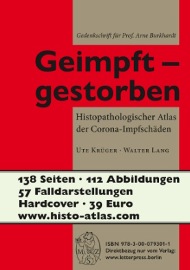 Dieser weltweit bisher einzigartige histopathologische Atlas der Impfschäden nach mRNA-Impfungen gegen SARS-CoV-2 ist den sehr berufserfahrenen und fachlich kompetenten Pathologen Prof. Arne Burkhardt und Prof. Walter Lang zu verdanken, die im Pathologieinstitut in Reutlingen tätig waren. Die Gewebeproben wurden von Pathologie- oder rechtsmedizinischen Instituten aus dem europäischen Raum dorthin eingesendet. Vorrangig wurden Todesfälle untersucht, die in zeitlichem Zusammenhang mit dieser Impfung zu sehen waren. Es wurden aber auch Gewebeproben von Lebenden eingesendet, wenn der Verdacht bestand, dass diese Impfung Ursache für die Gewebeschäden sein konnte