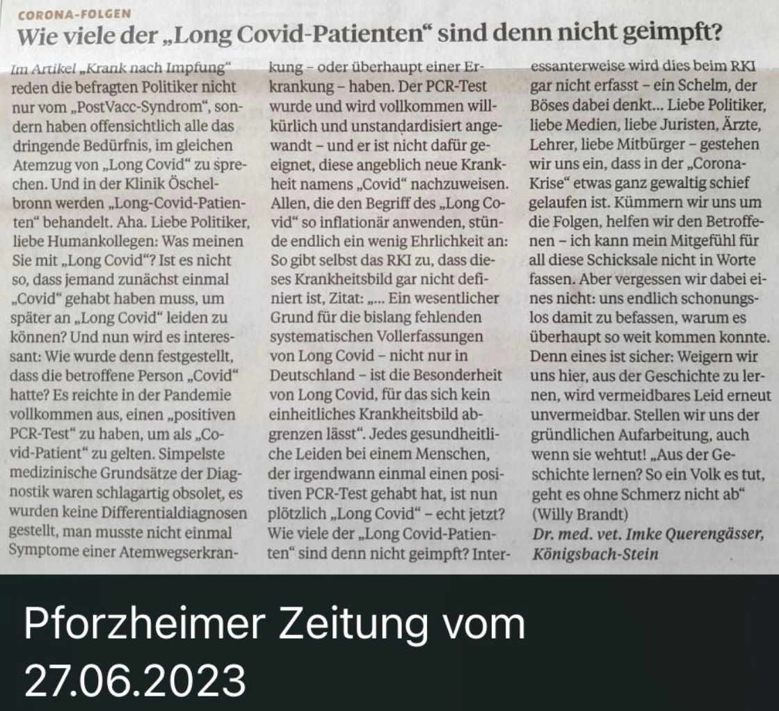 einer Impfpflicht für alle. Dies alles war ein Verbrechen gegen die Menschlichkeit!Long Covid = Impfschaden